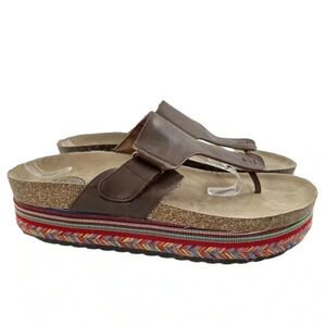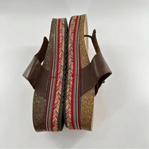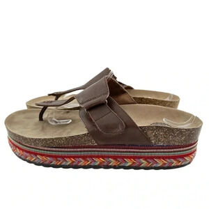 So womens sandals size 10 brown faux leather t-strap tribal boho bohemian chunky flatforms vintage y2K 90s