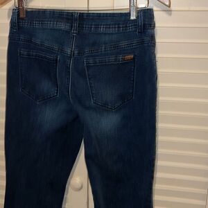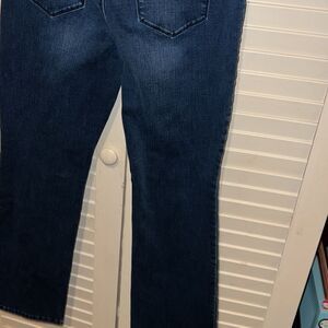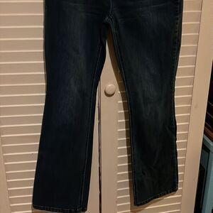 Sio slimming by Chicos size 00 short stretch denim flared jeans, has a 30 inch waist and an inseam of 28.5 inches.
