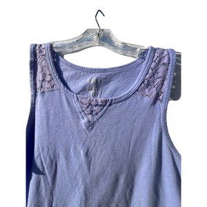 Light purple Tag-less tank in women's size 14. By So soft You Cutest Tank Petite with 60% cotton and 40% lace detailing on the bottom, chest, and shoulders. Made in Vietnam.