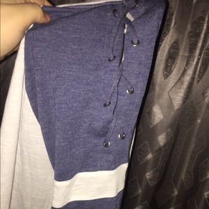 Blue and white so brand baseball tee with lace up detail on shoulders