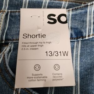 So womens jrs denim Jean shortie shorts striped sz 13 / 31w nwt