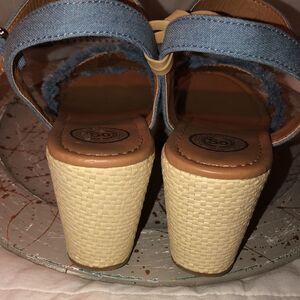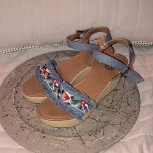 So 7.5 Ice Fish Embroidered Denim Wedge Sandals