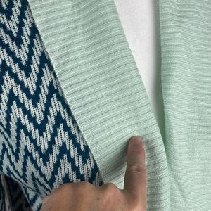 So It Is Aqua Teal Chevron Zig Zag Print Longline Open Front Cardigan sz M