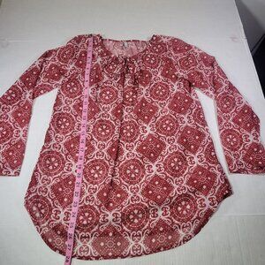 SoTeer Red & White Patterned Long Sleeve Tunic Peasant Blouse Size S