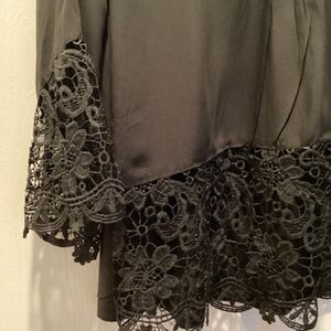 SoTeer V Neck Loose Top Flare Sleeve Lace Splice Blouse