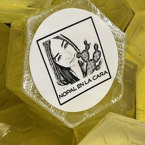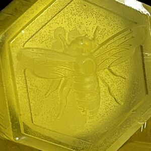 Bright yellow hexagonal soap bars with a honeycomb pattern. Perfect for a refreshing bath experience. it reduces acné and is ideal for sensitive skin