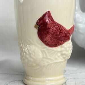 Soap Dispenser Ivory Porcelain Embossed Red Cardinal Made In Taiwan