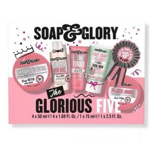Soap & Glory The Glorious Five Gift Set Body Butter Facial Wash Scrub Hand Cream & Soap & Glory Tip to Toe Pink Pamper Set. New In Box.