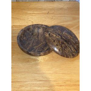 Soapstone Incense Burner Bowl Dish Pierced Lid 4" Carved Stone Brown