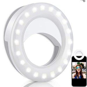 Brand New in Box..The perfect Portable accessory for Selfies with 3 brightness modes and 36 High Def LED lights. Can be used for photos, video calls, and conferencing. Simply clip this ring light onto phone, or computer, or Ipad, Universal Device compatibility, Made with Scratch resistant Pads that hold tight and prevent device damage, 2 AAA batteries included, Approx 3.5"Hx 3.5"W, smoke and pet free home.