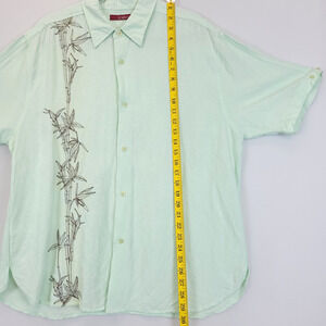 Sobrino Camp Button Down Shirt Linen Blend Embroidered Men XXL Mint Color Short Sleeve