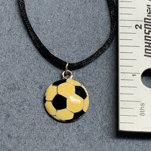 Show off your love for soccer while staying stylish. This black cord necklace with a soccer ball pendant is sporty, chic, and screams "goal-worthy fashion."