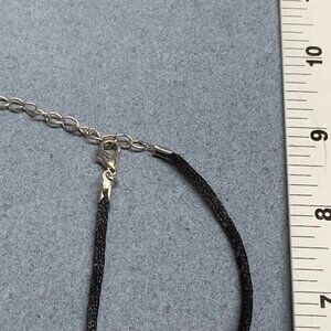 Approximately 17 inches long black cord, with 3 inch extender and lobster claw closure.