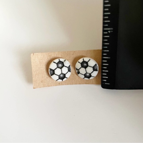 Soccer Ball Themed .5” Stud Earrings. Calling all soccer moms- wear these on the sidelines to cheer your kiddo on!