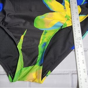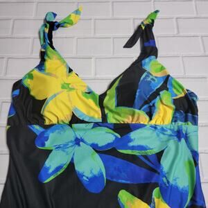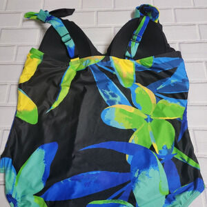 Social Angel Tropical Floral Swimsuit One-Piece Black Multi Women's Size 2X