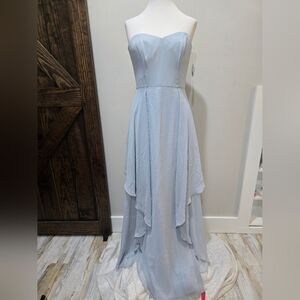 Social Bridesmaids 8195 Strapless Sweetheart Chiffon Gown NWOT sz 6 Mist Blue
