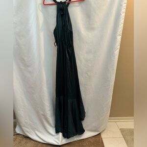 Social Maxime Tie Neck Halter Maxi with Asymmetric cascade ruffle dress is brand new and has the original tags attached. The color is evergreen - I think the website picture is more green than the actual color of the dress- it looks more muted green to me. See pictures for approximate size measurements and other info. This dress currently sells for $273 on the company’s website.