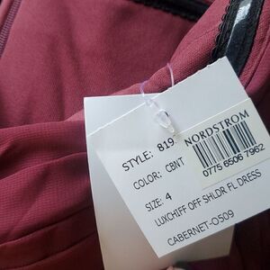 Social Bridesmaids Women's Strapless V-Neck Chiffon Trumpet Gown Size 4 Cabernet