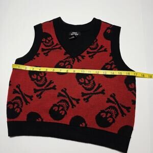 Social Collision Crop Sweater Vest Red Black SkulL Goth Hot Topic Y2k Medium