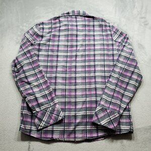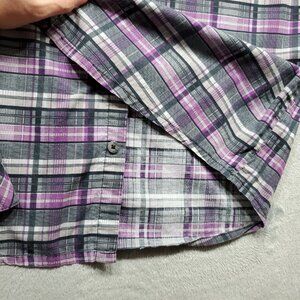 Social Collision Long Sleeve Button Up Plaid Shirt Purple Black Gray Men Sz L