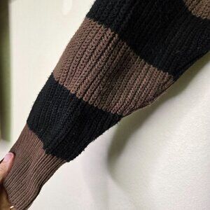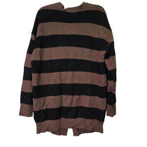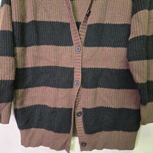 Social Collision Oversized Striped Cardigan Sweater Brown/Black L Grunge