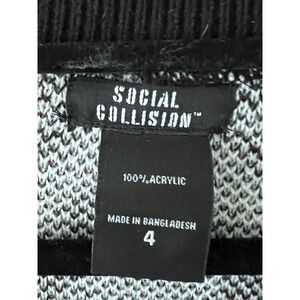 Infuse your wardrobe with a touch of edgy flair with this striking Social Collision cardigan. An audacious statement piece, this black and white knit sweater features an eye-catching skull pattern, offering a unique blend of gothic and alternative aesthetics. Cozy up in its open-front design, complete with functional pockets, perfect for keeping hands warm or stashing small essentials. Rock this cardigan at a concert, a casual day out with friends, or even to add some personality to a cozy night in.