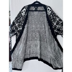 Keywords: Social Collision, Skull Cardigan, Sweater, Open Front, Black and White, Gothic, Alternative, Emo, Patterned Cardigan, Knit Sweater, Oversized Cardigan, Skull Pattern, Pockets, Long Sleeve Cardigan