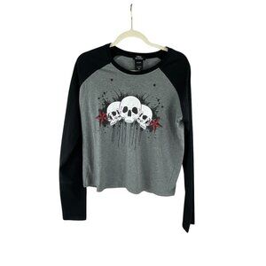 Social Collision Skull & Star Graphic Raglan Sleeve T Shirt 2X Black Gray Gothic