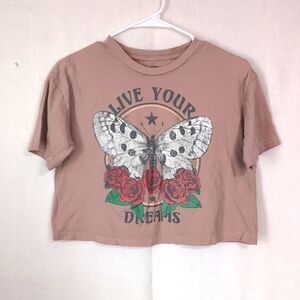 Social Culture Mauve Cropped Tee Short Sleeve Live Your Dreams Size Medium
