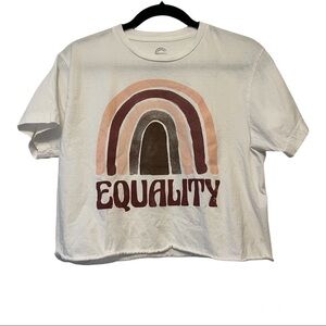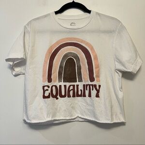 Social Culture White Pink & Brown Equality Rainbow Cropped Shirt