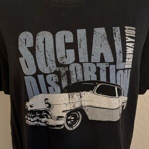 Social Distortion Band Black Highway 101 Graphic Shirt, size large. Please note; has signs of wear and stains, view all photos for best representation.