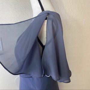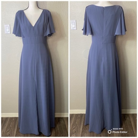 Social Gray Blue Bridesmaids Ruffle Sleeve V-neck Dress 8188