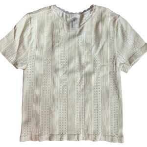 Social Revival Yellow/White, Eyelet, Lace Trimmed, Short Sleeve Crop Top- L/XL
