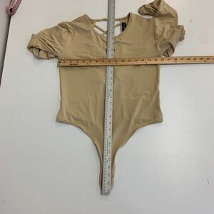 Social Scene Bodysuit Womens M Medium Champagne Tan Open Tie Back Snap Buttons