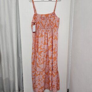 Social Standard Pink / Orange Sundress Smocked Back Maxi Dress size XL