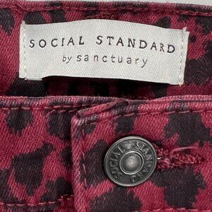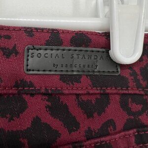 Social Standard Women's Animal Print Mid Rise Skinny Burgundy Denim Jeans Size 8
