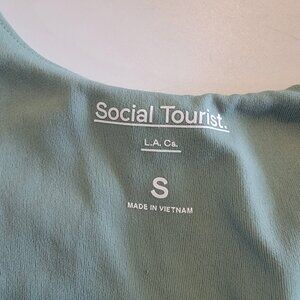 Social Tourist Sports Bra Green Scoop Neck Bralette Top S Wireless Lightweight
