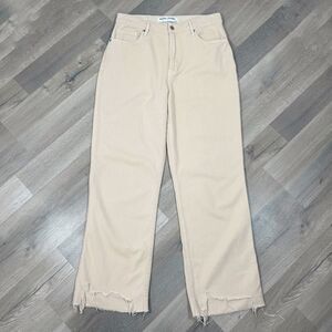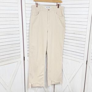 Social Tourist Ultra High Rise Raw Hem Shark Bite Straight Leg Jeans Cream 31