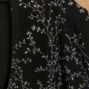 Social top, short sleeved, stretchy material, black with beautiful floral sparkle. Good condition. Size L