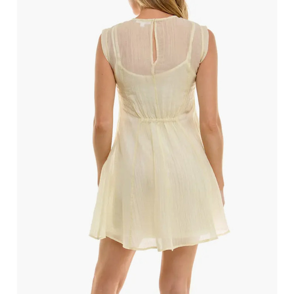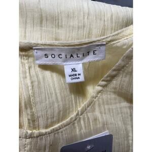 Socialite Babydoll Mini Dress XL Yellow Crinkle Gauze Tiered Hem NWT Women’s