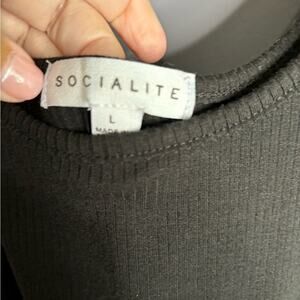 This NWT Socialite dress is a sleek and versatile piece, designed for both comfort and style. The fabric has a soft, stretchy feel that hugs the body while offering ease of movement. The ribbed texture adds subtle dimension to the dress, enhancing its modern and casual appeal.