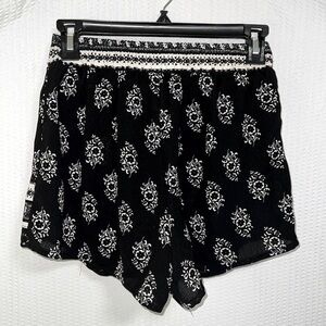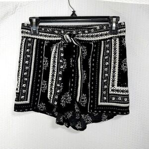 Socialite Black & White Flowy Boho Floral Print Tie Waist Shorts - Size XS