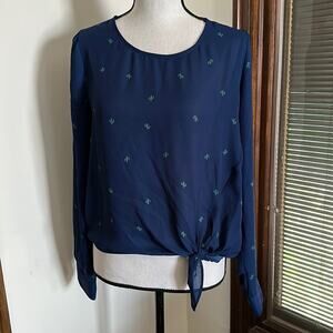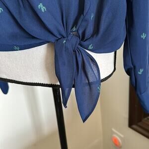 Socialite | Blue Cactus Print Tie Front Blouse Size S NWOT