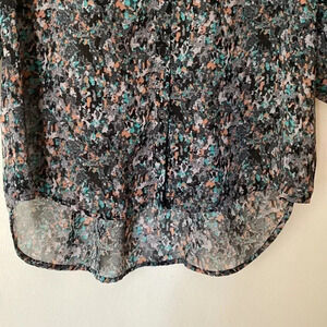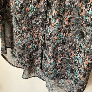 Socialite Button Down Cuff Sleeve 3/4 Sleeve Multicolor Print Blouse Size L