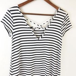 Socialite Cross Back Shift Dress Small Mini White Black Striped Short Trapeze