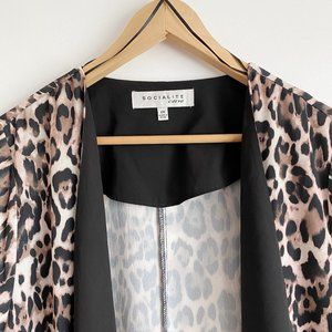 Socialite Curve NWOT Women's Casual Blazer, Open Front, Leopard Print, Size 2X