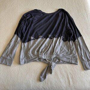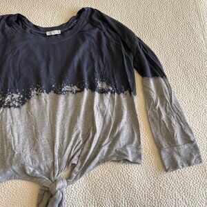Socialite Distressed Tie Front Sweatshirt Blue and Grey Sz L