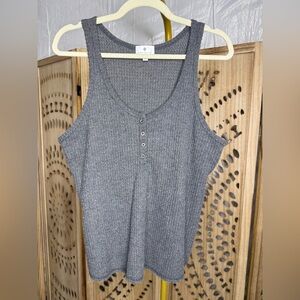 Socialite Gray Ribbed Buttoned Tank Top