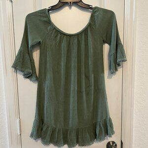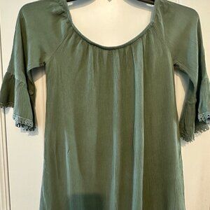 Socialite Green Bell Sleeve Tunic Dress Medium Rayon & Polyester