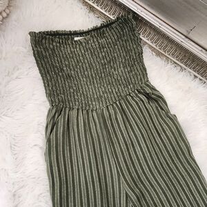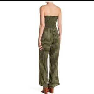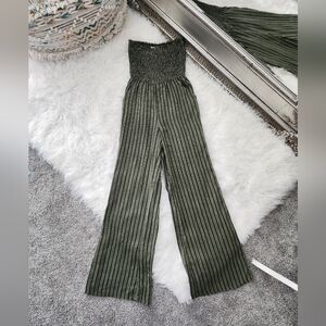 Socialite Green Striped Smocked Strapless Wide Leg Jumpsuit size xsmall. Good pr